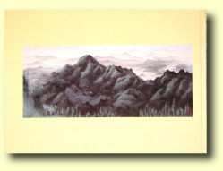 八十四年七月往山東之泰山,登玉皇頂,繪拱北石、仙人橋、摩崖刻石,日觀峰繪雲海起伏;在山下的岱廟畫天貺殿,寫許多株奇形怪狀的古柏。