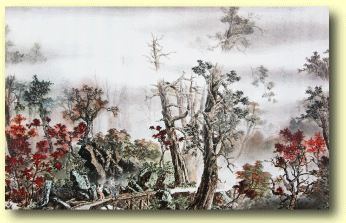 進入拉拉山森林區,高聳的巨木群巍巍聳立,每顆的姿態都不相同,令我仰頭作畫也不以為苦。其中有一棵大樹要花上竟日之工才能完成。也曾請一對情侶在橋上多等幾分鐘,以做為點景之效。